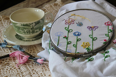 I picked up a couple of pillowcases that my mother had started embroidering.